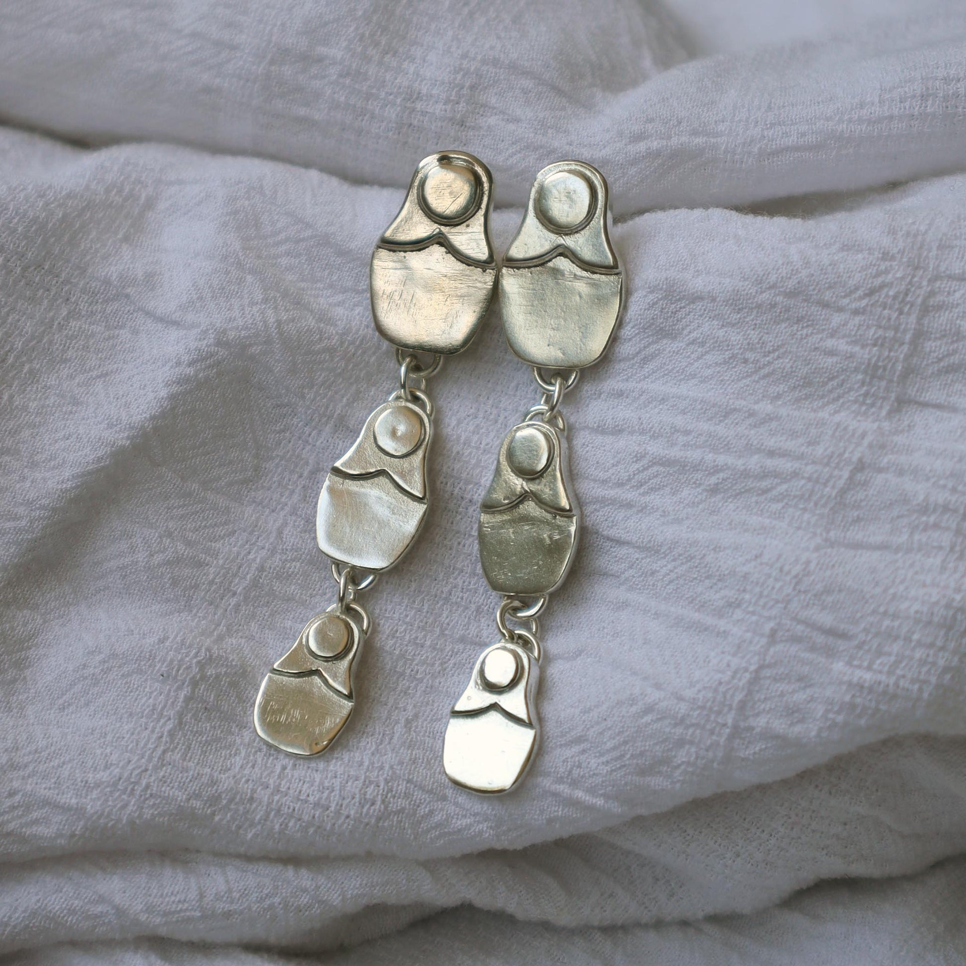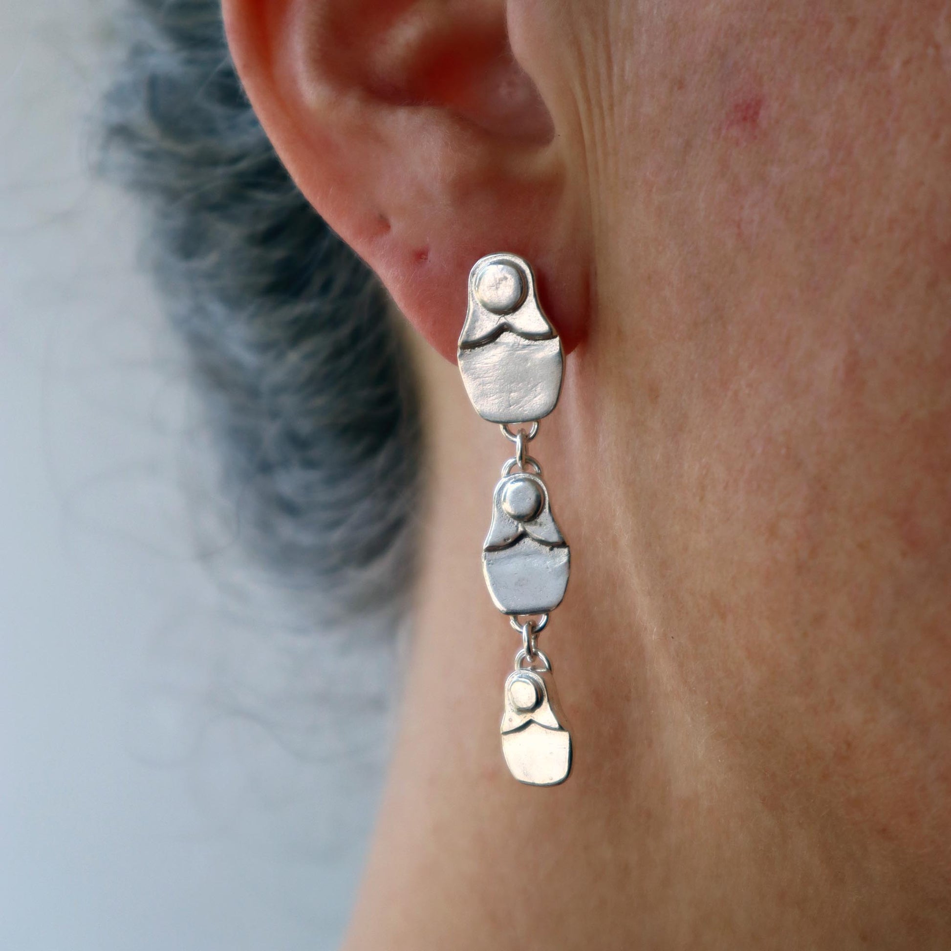 Aros inspirados en las muñequitas rusas. Fabricado a mano artesanalmente en plata 950.