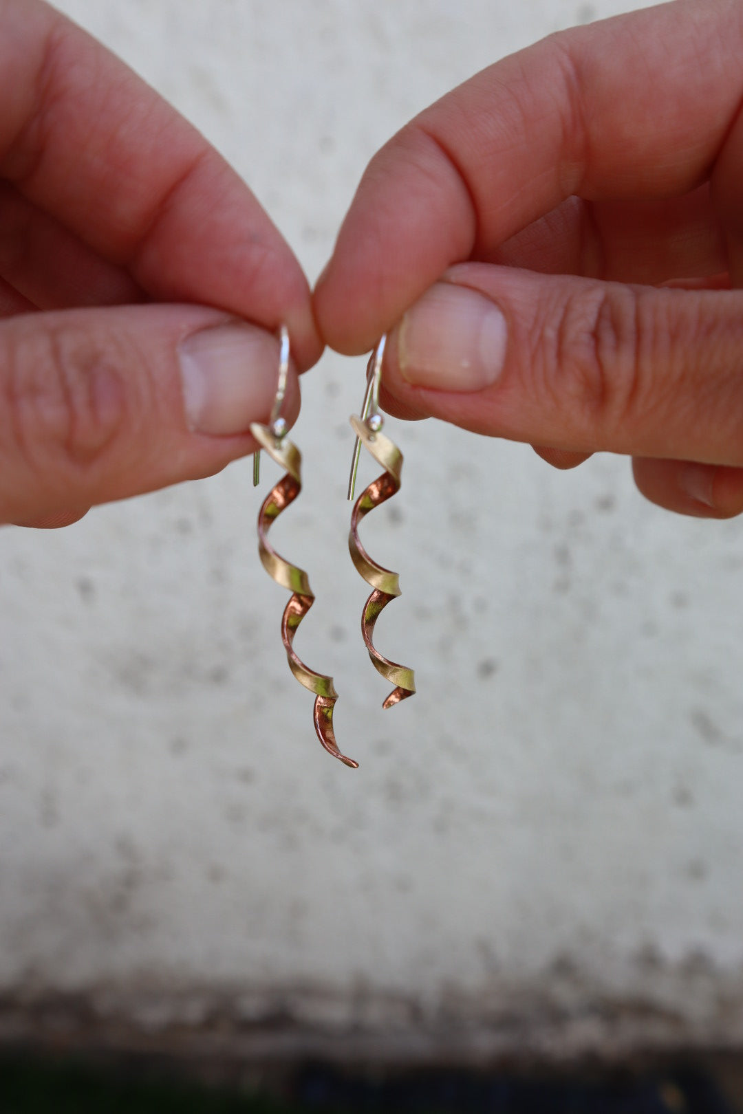 Aros de bronce curvados como semilla. Gancho de plata